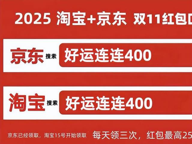 打开淘宝/京东,搜“[好运连连400]”,先领今天的红包;收藏这篇攻略,10月31日、11月10日设好闹钟。